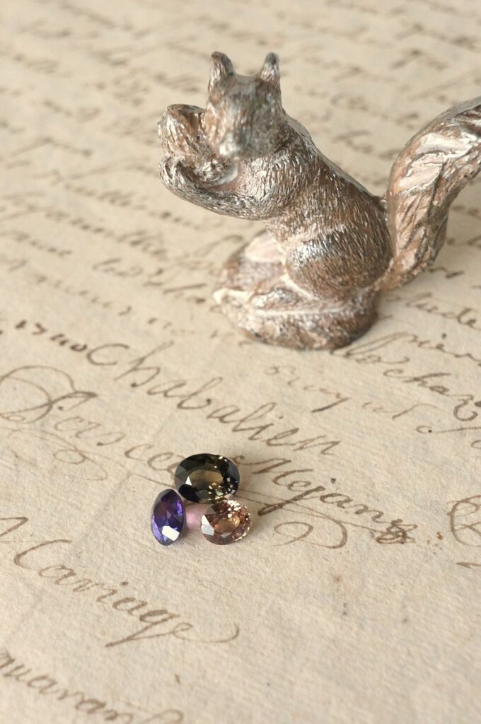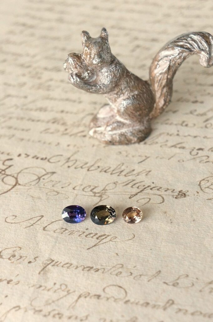 ルースコレクションから、パープルサファイア・非加熱ゴールデングリーンサファイア・パパラチャサファイア。