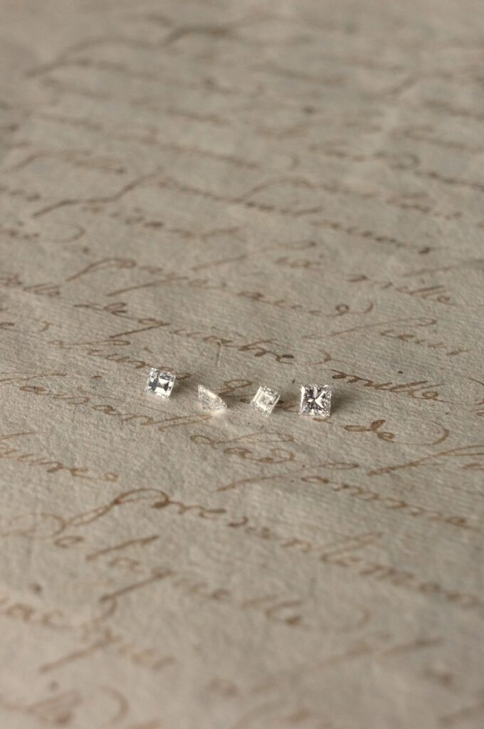同じ四角い形でも、細かな煌めきのプリンセスカットや、水面のようなステップカット、