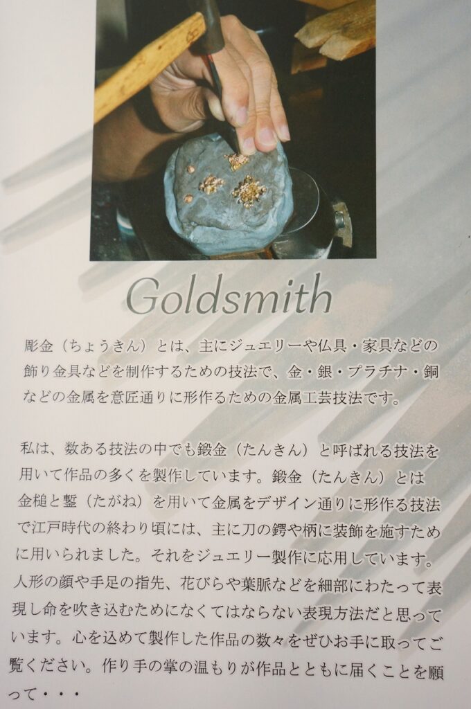 鍛金と呼ばれる製法やスペインでの芸術活動など、素晴らしいセンスと才能をお持ちの方が仕立てる