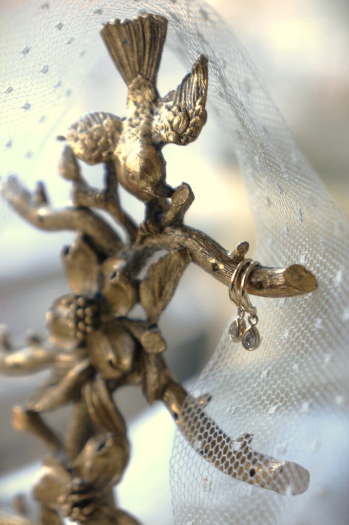 雫型のダイヤモンドを包み込んで仕立てたフックタイプのオリジナルピアス。