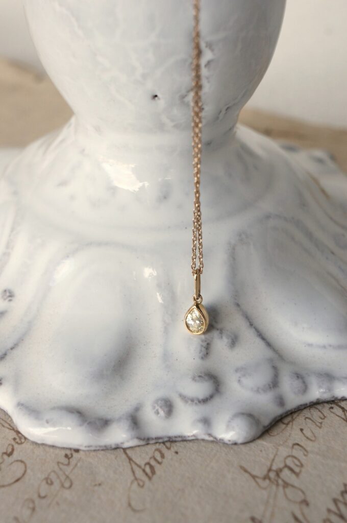 裏面に放射線状に細かなカットが施された珍しいペアシェイプのダイヤモンドで、