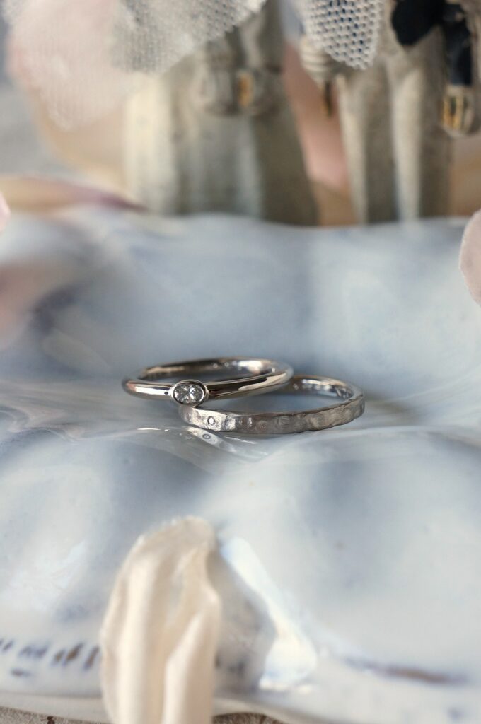 メレダイヤを1石。素材はお揃いの18金ホワイトゴールドに。