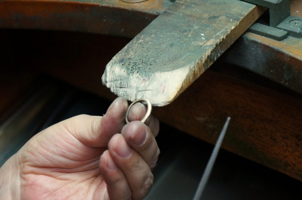 リングの曲線にしても手仕事による職人技で削っていきます。